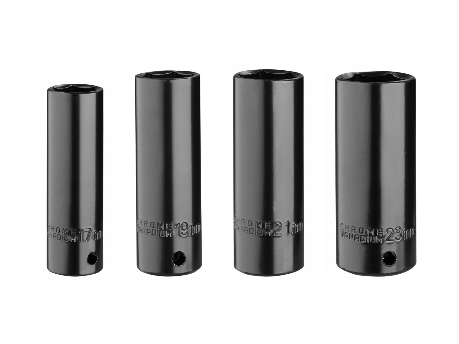Akcesoria: 4 nasadki udarowe Ø 17 / 19 / 21 / 23 mm (długość: 75 mm)