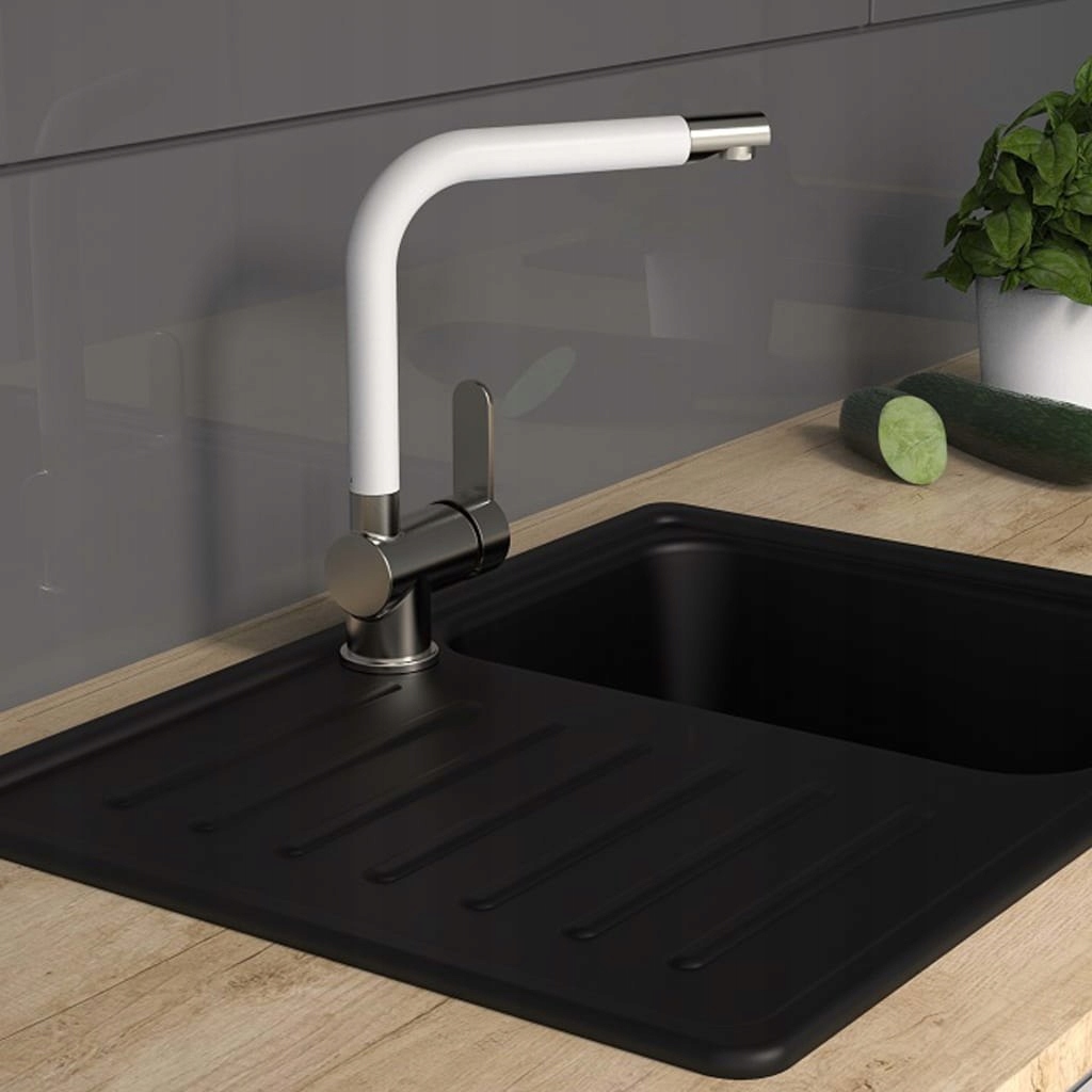Bateria wykonana z metalu gwarantuje długą żywotność. Dodatkowo oferuje uniwersalną konstrukcję metalowego węża przyłączeniowego, obrotową w zakresie 360° wylewkę, metalowy uchwyt, krążki ceramiczne, a także wymienny i cichy wkład o średnicy 40 mm. Bateria ma funkcję „zimnego startu”; która pozwala zaoszczędzić energię. Wszystko to sprawia, że kran ten pasuje do większości zlewozmywaków.