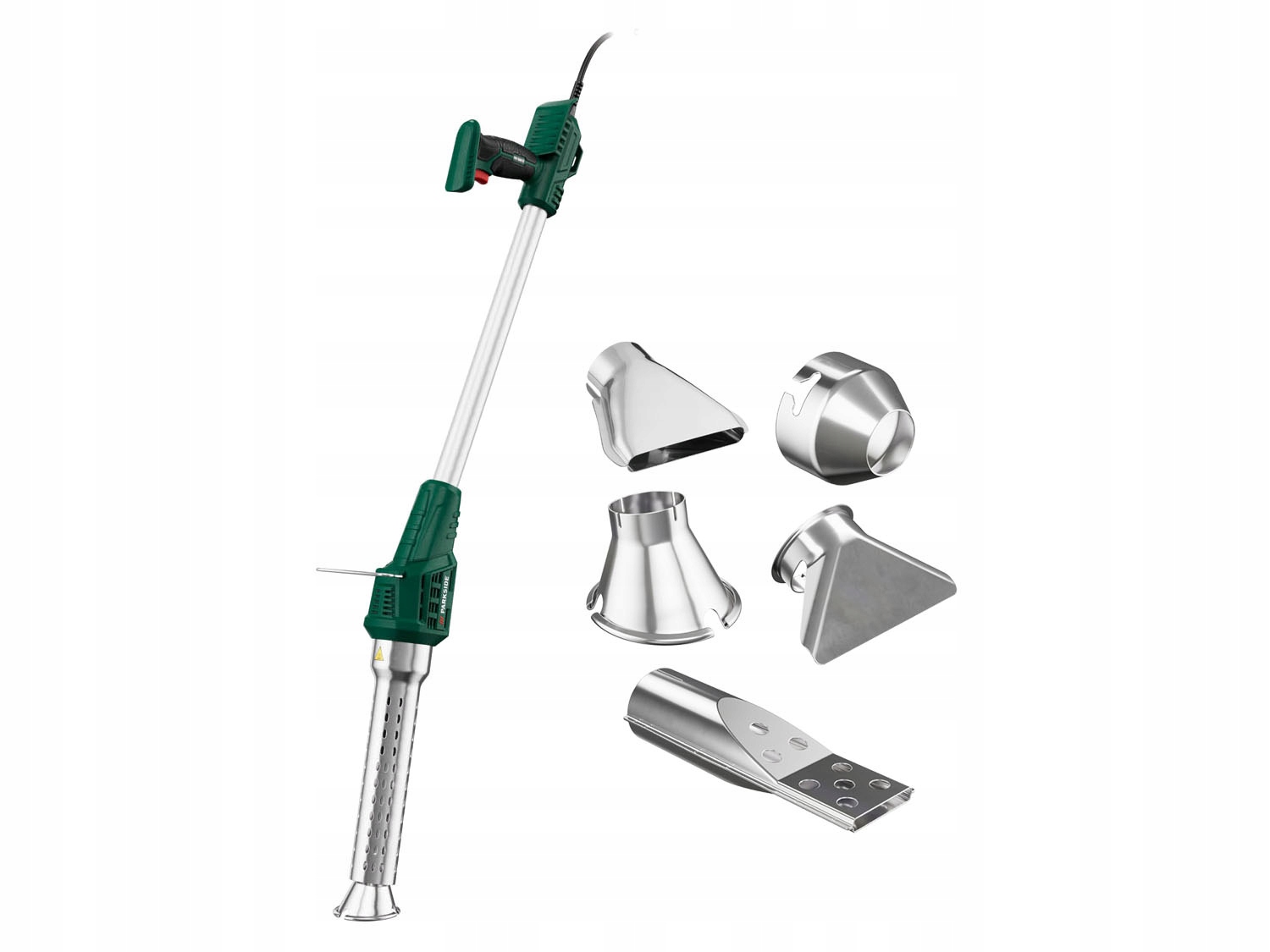 - z 5 nasadkami: dysza stożkowa do niszczenia chwastów, dysza do szpachli, dysza płaska, dysza redukcyjna i dysza do grilla