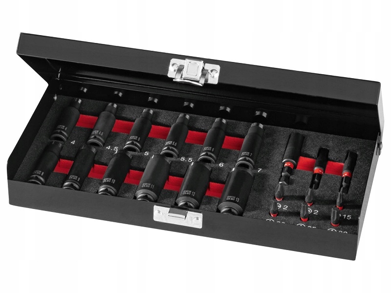 - 12 kluczy nasadowych sześciokątnych ze stali chromowo-molibdenowej