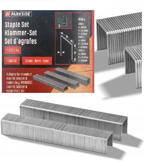 Zszywki TYP 53 do Parkside PAT 4 D5 długość 10 i 8 i 6 mm po 1000 szt czyli razem 3000szt