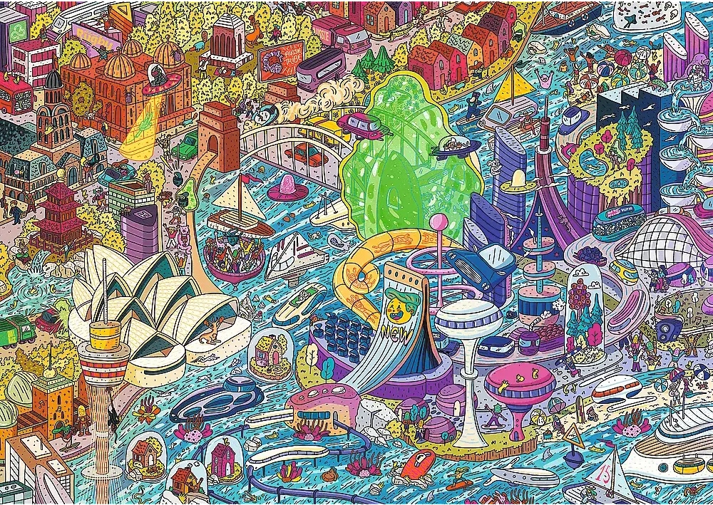 Sydney– seria Eye-Spy UFT 1000 elementów, pozwolą na łączenie dowolnej ilości układanek w jeden kolaż. Plakat puzzli z serii Time Travel przeniesie Cię do Sydney, gdzie wszystko jest możliwe. Daj się zaskoczyć ilością szczegółów. Przypatrz się dokładnie poszczególnym obrazom i odnajdź w nich scenki nasycone dużą dawką humoru!