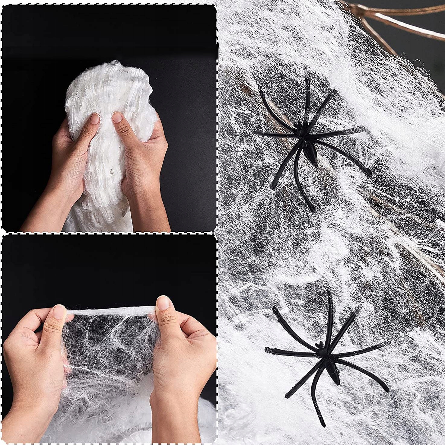 Sztuczna Pajęczyna Sieć Pajęcza Halloween Dekoracja Domu + 2 Pająki XL 60g