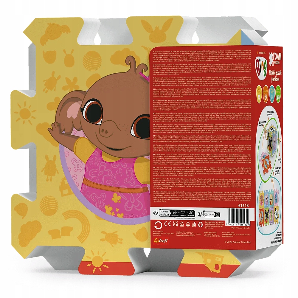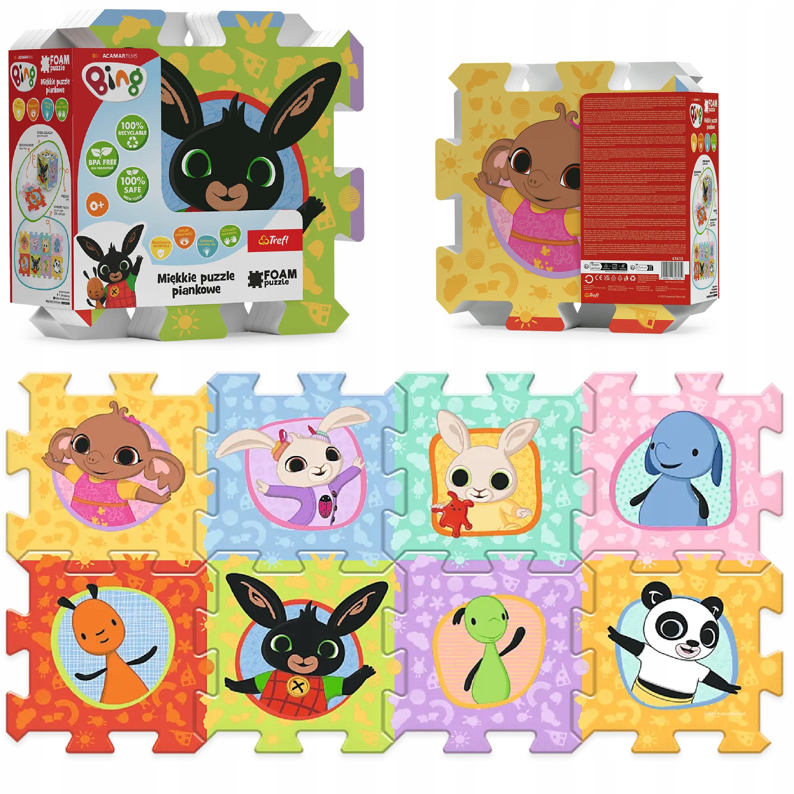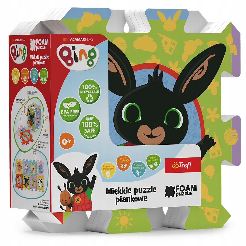 Układanka puzzlopianka Bing to zestaw dużych i miękkich puzzli, stworzonych z myślą o małych fanach bajki o króliczku.