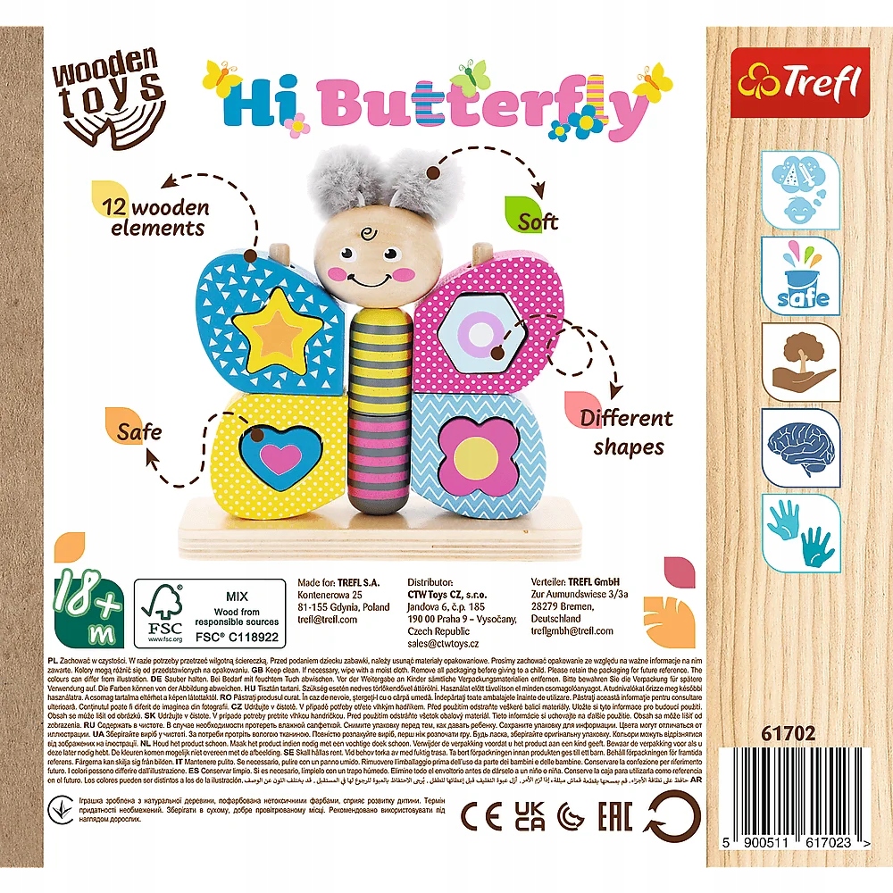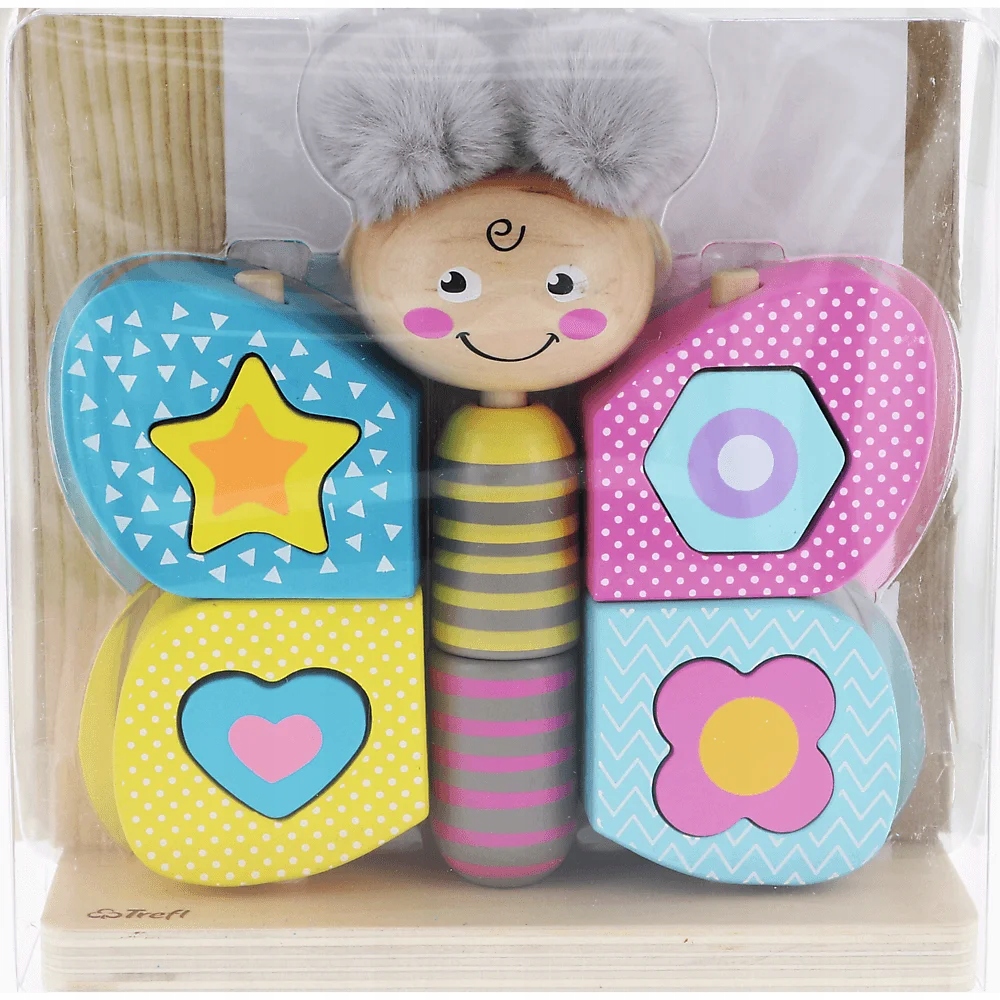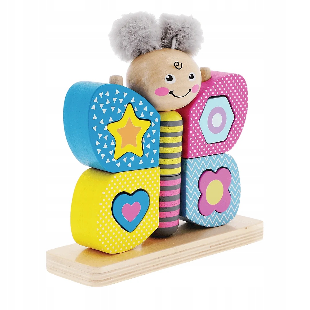 Hi Butterfly to zabawka, która powstała z wysokiej jakości naturalnego drewna oraz pluszu. To idealne rozwiązanie dla dzieci już od 18 miesiąca życia: skrzydełka po rozłożeniu pełnią funkcję sortera, motylek składa się z 11 ruchomych klocków, które wspomagają rozwój zręczności i motoryki dziecka, a pluszowe pompony rozwijają zmysł dotyku. Zabawka wspiera naukę logicznego myślenia, a wszystkie materiały, które wykorzystno do stworzenia zabawki zawierają atesty i zostały pomalowane nietoksycznymi farbami.